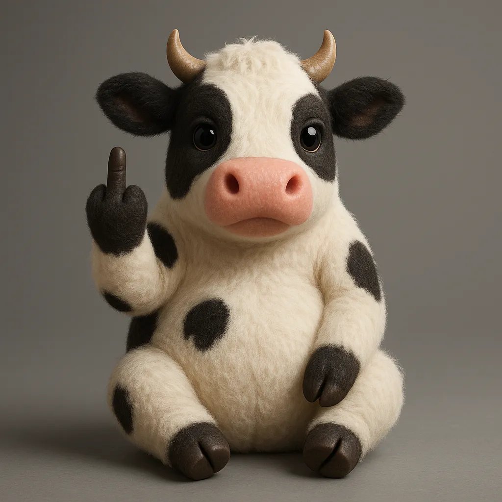 ✔ 'Huggable Hostility' – Super-soft faux fur with embroidered middle hoof (for gentle defiance)